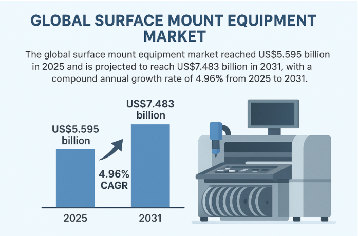 According to QYResearch, the global surface mount equipment market reached US$5.595 billion in 2025 and is projected to reach US$7.483 billion in 2031, with a compound annual growth rate of 4.96% from 2025 to 2031. This growth is primarily driven by the increasing demand for automation across various industries to improve operational efficiency and address labor shortages.